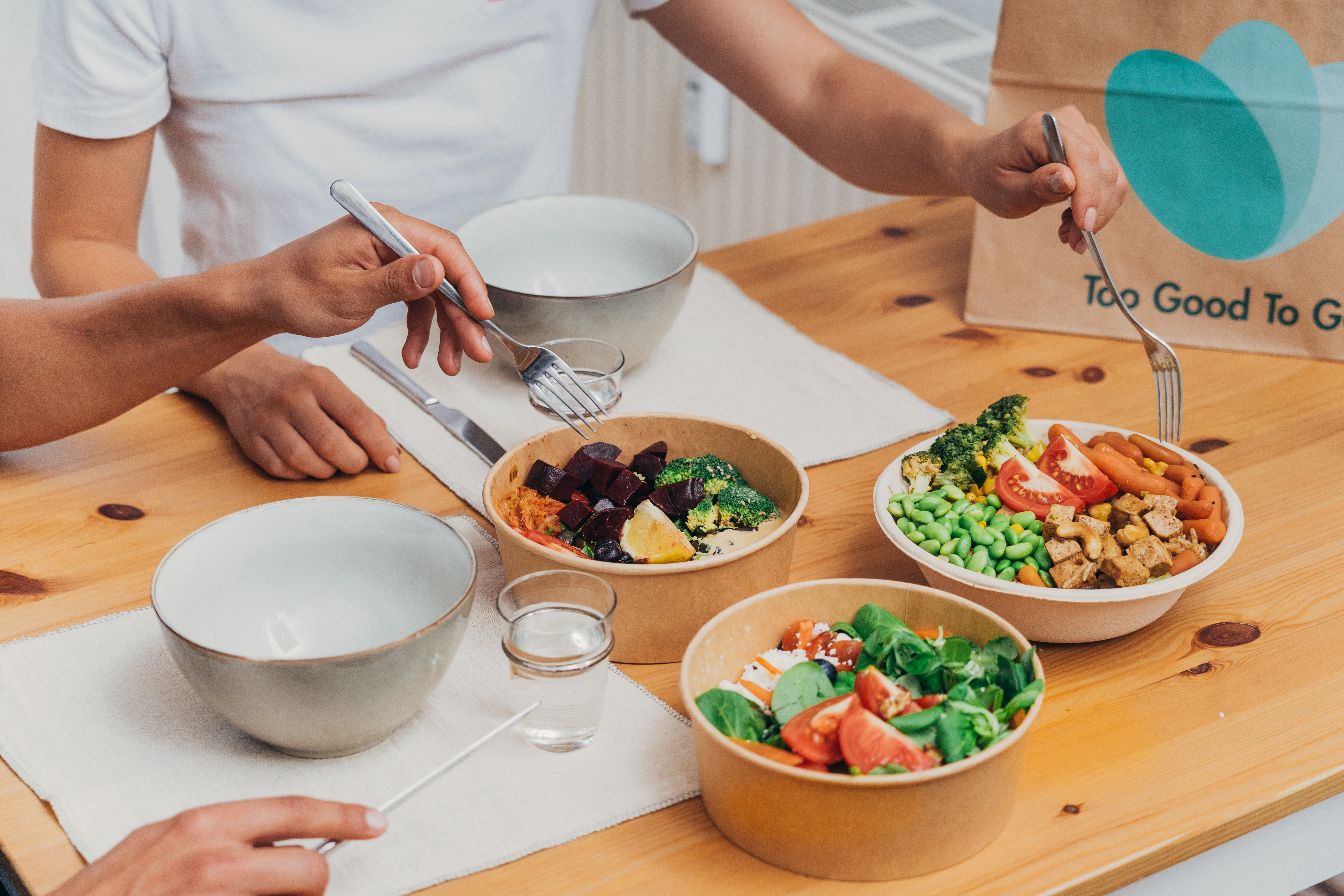 Bis 2016 gab es in Deutschland keine Lösung für einen Bereich, in dem Lebensmittel übrigbleiben und in die Tonne wandern: Orte, an denen jeden Tag Mahlzeiten serviert oder verkauft werden. 2016 gründete sich in Deutschland das ökosoziale Unternehmen Too Good To Go, um eine App zu entwickeln, mit deren Hilfe in Gaststätten, Cafés, Bäckereien, Supermärkten und Hotels unverkauftes Essen abgeholt und in einer umweltfreundlichen Verpackung oder eigenen Frischhalteboxen mitgenommen werden kann.