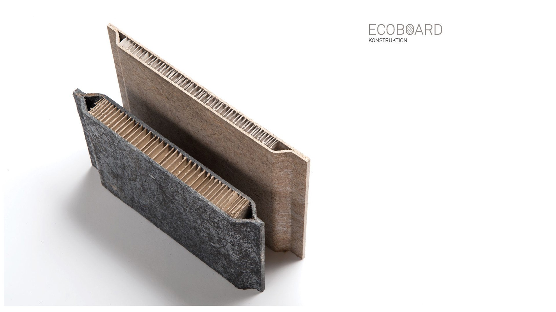 Mit dem Konzept wurde eine zu 100% recycelbare, schadstofffreie Platte für den Möbelbau entwickelt, kombinierbar mit Edelstahlelementen. Der Produktionsprozess ist nach dem Cradle-to-Cradle-Prinzip transparent und rückführbar. Die Konstruktion aus Naturstoffen schafft Stabilität bei wenig Gewicht. Dekor und Farbe sind schon bei der Herstellung wählbar. Ein Finish durch belastende Lacke und Laminate ist so unnötig.