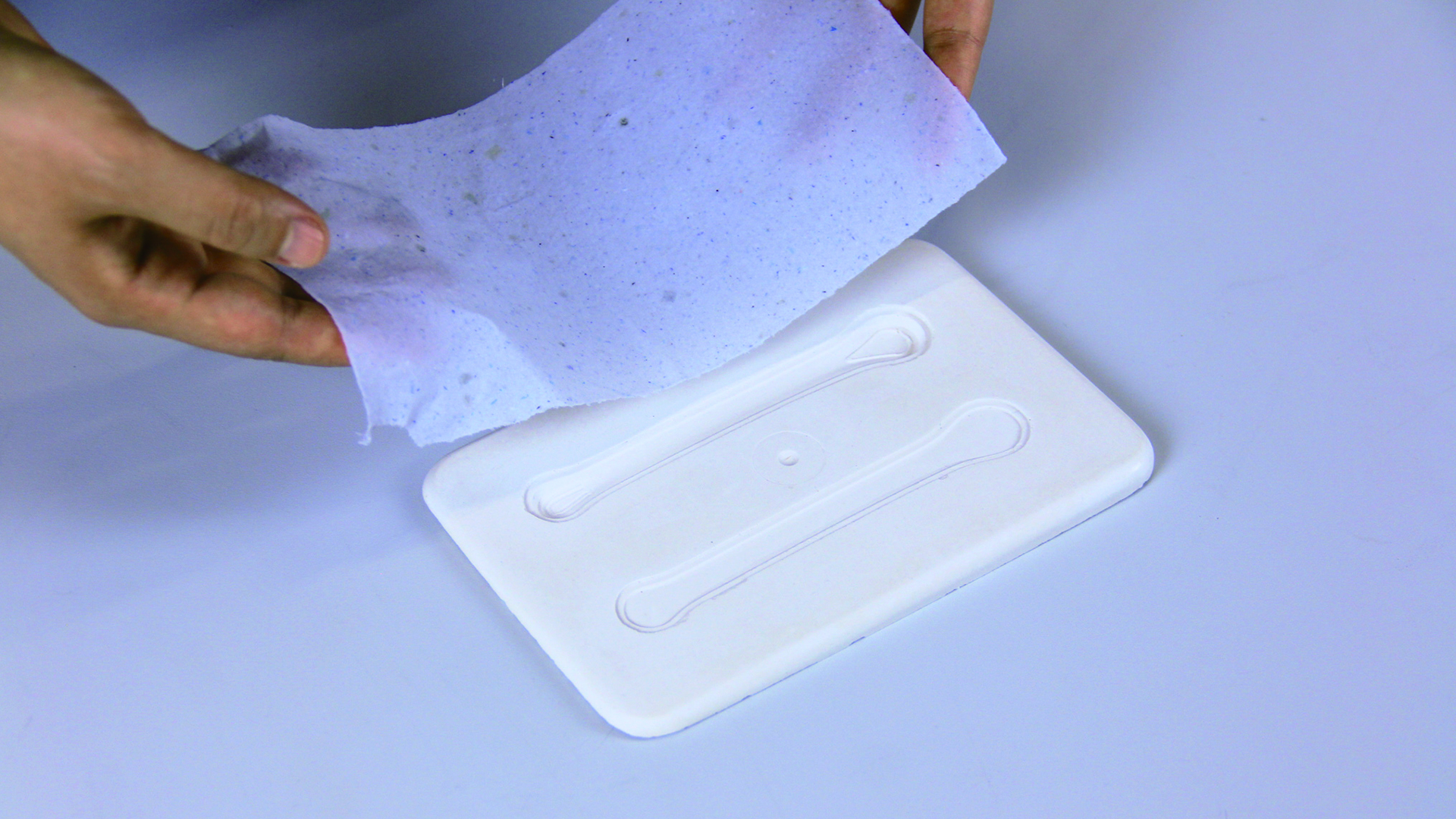 »Das Projekt Papier-Schwangerschaftstest ist komplett aus Recyclingpapier. Normalerweise werden die aus Kunststoff bestehenden Schwangerschaftstests nach Gebrauch entsorgt, was einen negativen CO2-Footprint zur Folge hat. Die hier aus Materialexperimenten resultierende neue Produktidee ist nicht nur umweltschonend, sondern auch weicher und freundlicher in der Anwendung.«