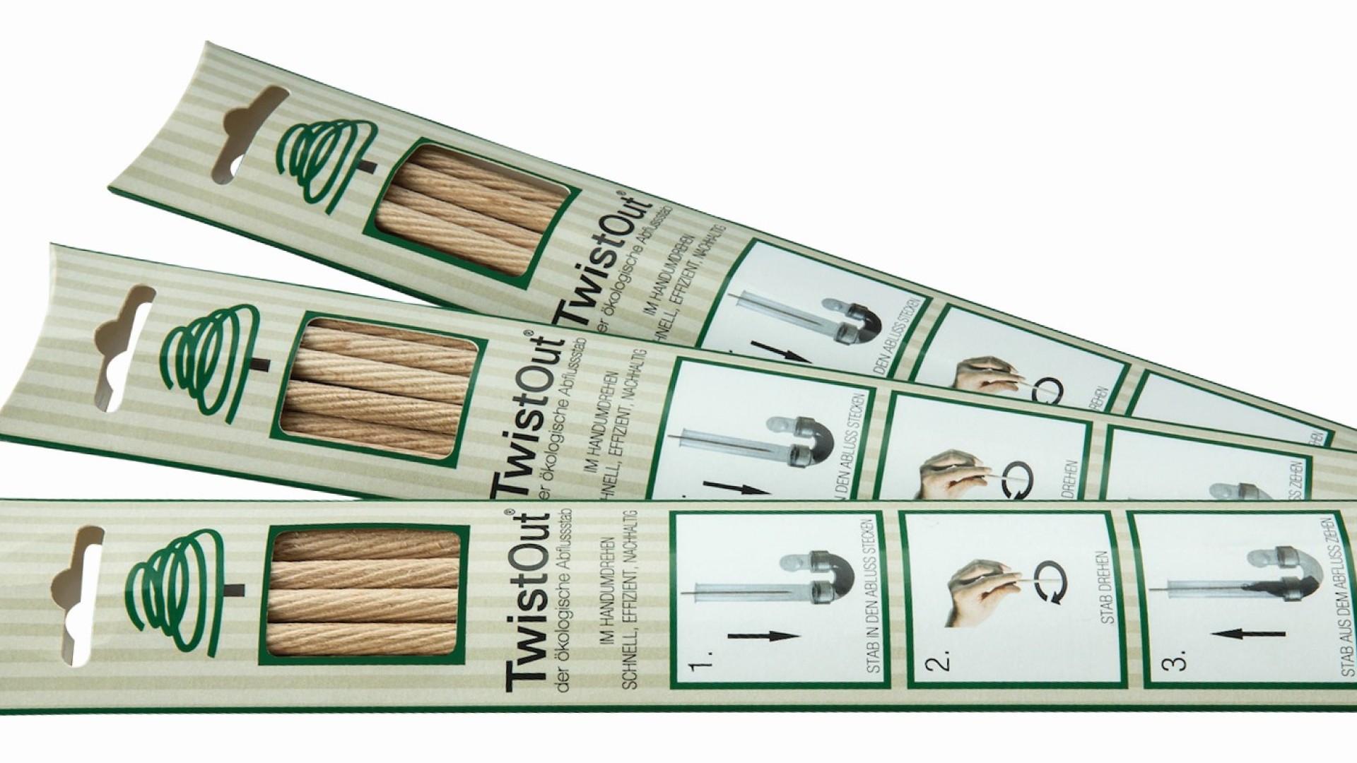 Der spiralförmige Rohrreinigungsstab aus 100 % Buchenholz erlaubt die schadstofffreie Reinigung von Abflussrohren und schont so die Umwelt. Die im Abfluss befindlichen Rückstände wickeln sich am Stab auf und bleiben beim Herausziehen sicher in dessen Rillen haften. Der TwistOut® wird in Deutschland hergestellt und verpackt. Da er ohne Chemie und Plastik auskommt, kann er nach Gebrauch ohne Weiteres auf dem Kompost oder im Müll entsorgt werden.