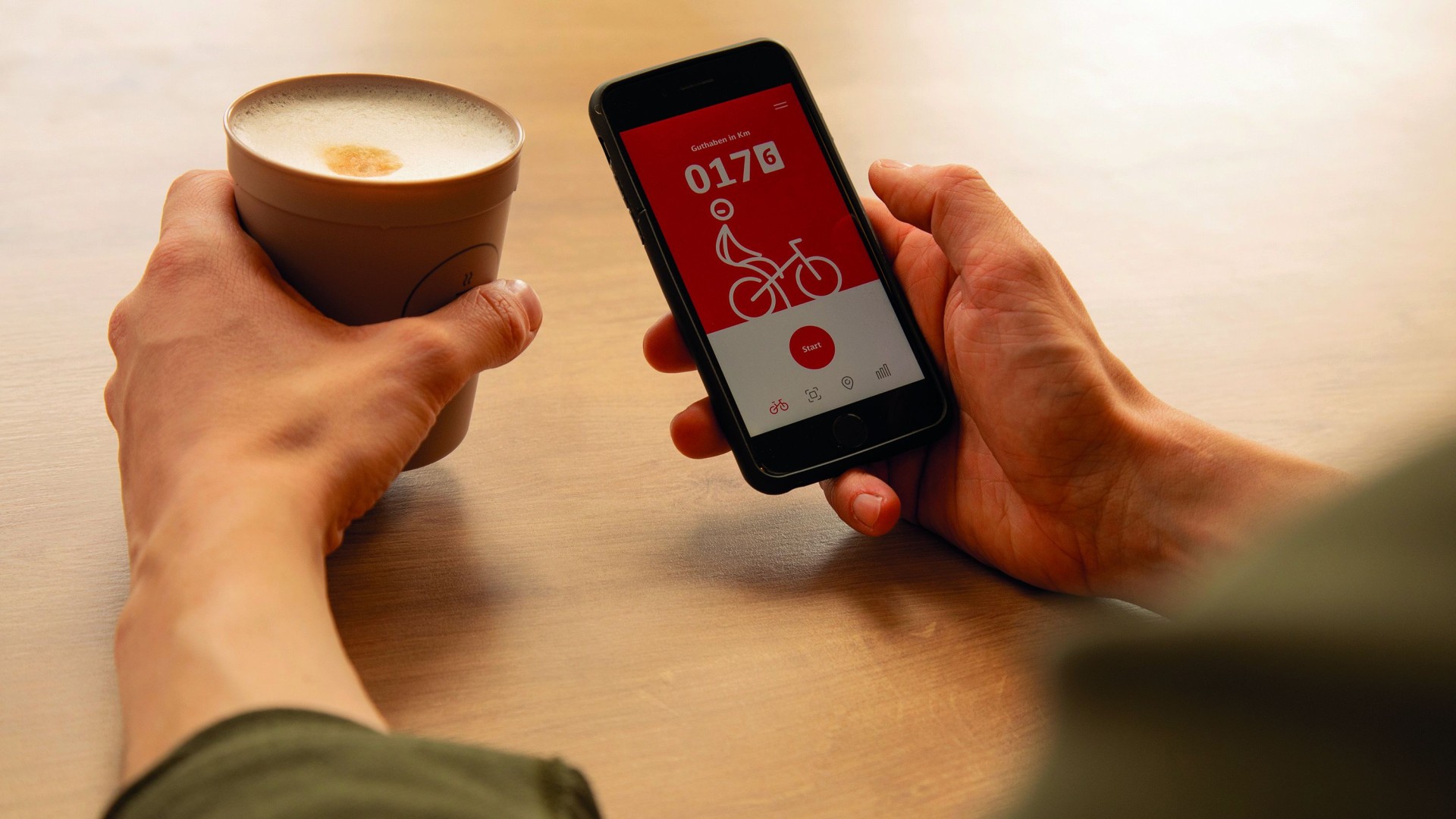 The DB Rad+ app developed as part of the ‘Zukunftsbahnhöfe’ initiative (Train Stations of the Future) rewards users for kilometres ridden on the bike. To make rail travel even more environmentally friendly, the app and its intuitive user interface transform the cycling route to and from the train station into a form of currency. Accumulated credit can be redeemed at local partners for coffee, pastries and many other offers.