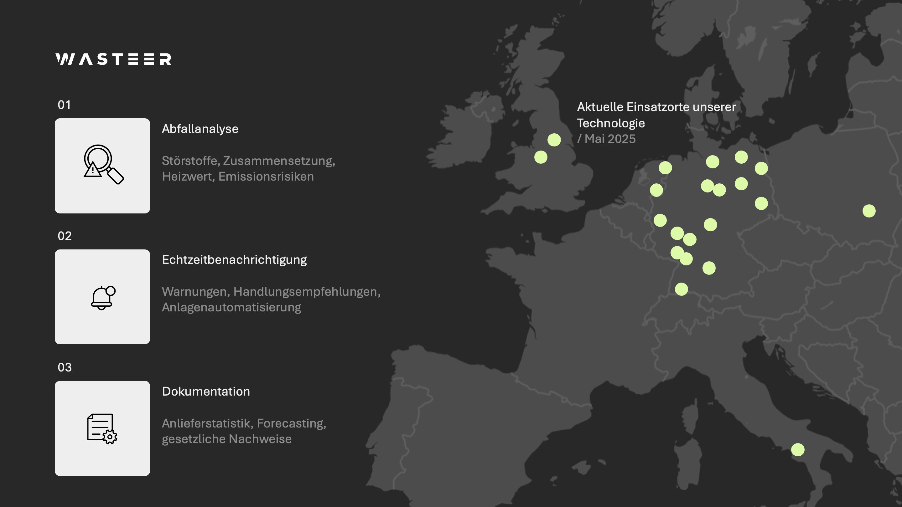 We’re already active in eight European countries and have our sights set on expanding from China to the US. At the same time, we are extending our technology into new sectors: recycling, pre-sorting, and processing. Our goal is to build a lean, dynamic team and create scalable products that make waste management more efficient around the globe.