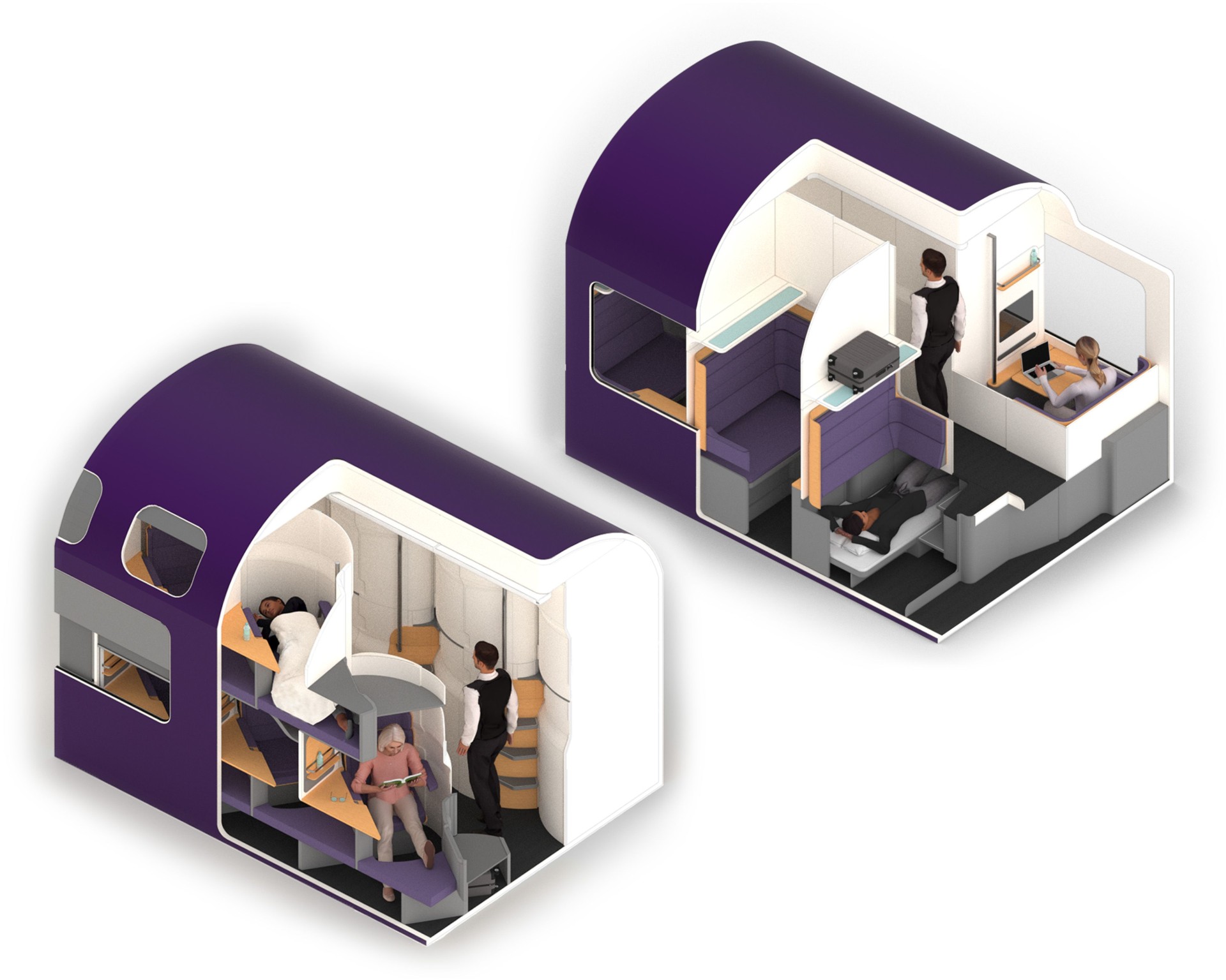 Luna Rail Seat and Hotel Pods