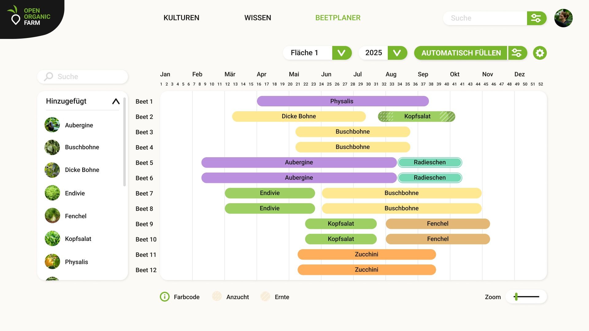 Open Organic Farm is a freely accessible online platform that simplifies the process of starting vegetable cultivation. The user interface, designed by Ilonka Berkényi in collaboration with Nature Robots, draws inspiration from the “market garden” concept. At its core is the bed planner, a professional tool that makes plot planning and design more intuitive, supporting vegetable growers from the very beginning. The platform is tailored for individual, site-specific, small-scale and bio-intensive vegetable cultivation.