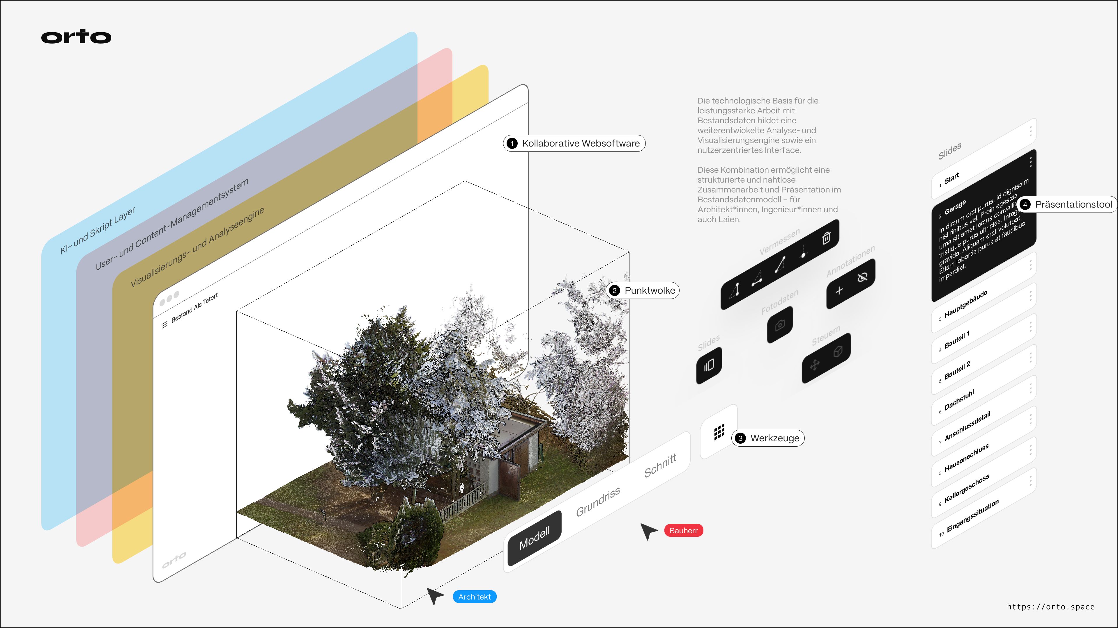 »The orto space software supports construction companies in identifying potential for reuse. Building within existing structures and using existing components is a prerequisite for future-oriented circularity in the construction industry. The digital storage of comprehensive building data enables more precise reuse of building materials.«