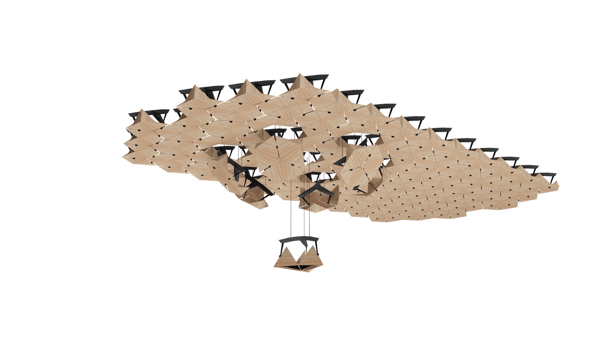 Dynamische Raumakustik (Dynamic room acoustics) is a modular ceiling system for adaptive room acoustics. A movable structure fulfils a range of acoustic requirements in concert halls, recording studios and multi-purpose halls, allowing rooms that were previously optimised for a particular use to be utilised more flexibly. Multifunctionality in architecture not only helps to conserve resources but also enables the planning of significantly more sustainable buildings.