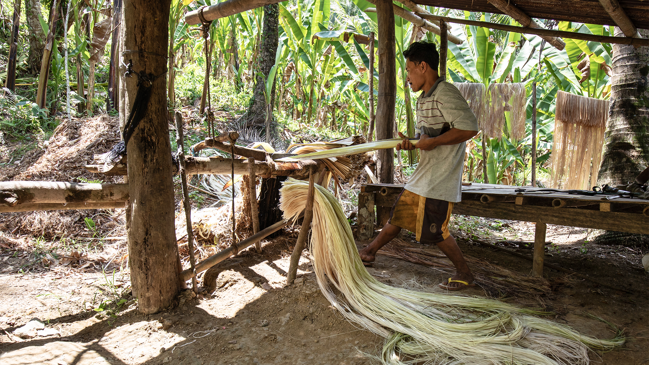 Seit der Gründung von QWSTION im Jahr 2008 haben wir an Möglichkeiten gearbeitet, um Taschen aus nachwachsenden Rohstoffen herzustellen, die genauso funktional wie nachhaltig sind. Nach Jahren der Erprobung natürlicher Alternativen für synthetische, erdölbasierte Textilien, hatten wir ein Etappenziel in Form unseres Canvas aus 100 % Bio–Baumwolle erreicht. Durch ein von uns entwickeltes Verfahren können wir die weichen, flexiblen Baumwollfasern so bearbeiten, dass daraus robuste Taschen entstehen. Trotzdem waren wir überzeugt, dass es noch besser geht – und haben weiter geforscht. Vor ca. vier Jahren kam unser Designteam in Kontakt mit einem Garn-Hersteller, der begonnen hatte mit den Fasern der Bananenpflanze Abacá zu experimentieren. Uns war sehr schnell klar, dass dieses Thema immenses Potential hat – daraufhin haben wir mit der Entwicklung begonnen.
