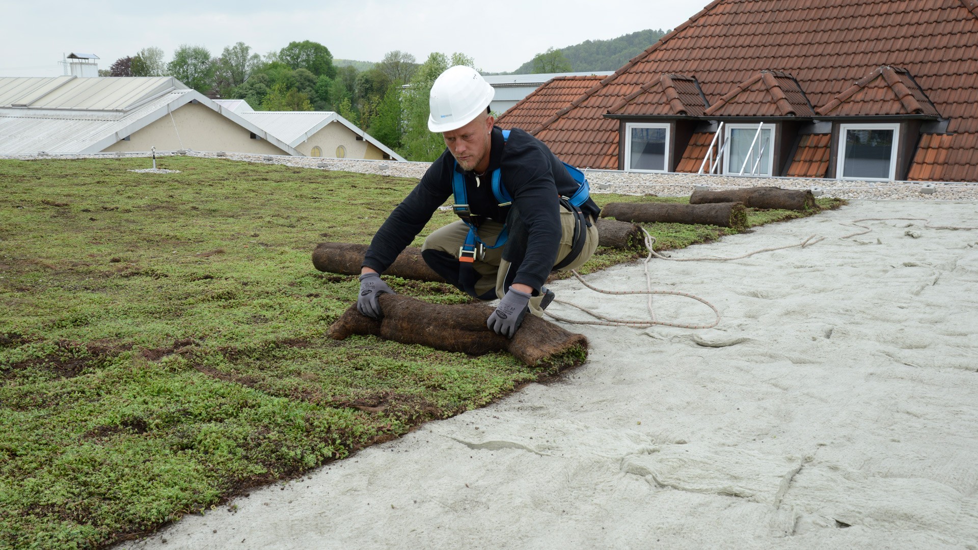 Urbanscape ist ein einfach verlegbares Dachbegrünungssystem. Es besteht aus einem Drainage-System aus rezykliertem Polystyrol und einer bindemittelfreien Steinwolle-Wachstumsmatte. Die Vegetationsschicht ist bereits bewachsen. Auf Weichmacher und andere chemische Bestandteile wird verzichtet. Ein robuster Sedum-Mix in der Vegetationsmatte sorgt dafür, dass die Pflanzen längere Trockenperioden überdauern.