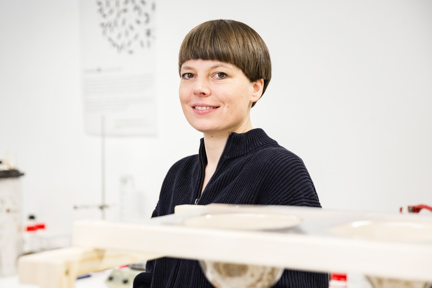 Ich bin Industriedesignerin mit einer Faszination für Materialien, Technologien und Nachhaltigkeit. Material- und technologiebasierte Produktentwicklung ist der Schwerpunkt, in dem ich seit 2016 als Professorin an der Burg Giebichenstein in Halle unterrichte. Salopp gesagt, zielen die Veranstaltungen und Entwurfsprojekte zunächst darauf ab, ein Grundverständnis über Materialien, Technologien und Nachhaltigkeit zu vermitteln. Dieses Wissen um die große Bandbreite und auch die dahinterliegenden Potenziale und Risiken von Materialien und Technologien können die Student*innen frühzeitig in ihre Entwürfe einfließen lassen. Schlussendlich geht es aber weit darüber hinaus – nämlich darum, Kontexte zu verschieben bzw. Grenzen neu auszuloten – zum Beispiel ein Material in einer eher ungewöhnlichen Technologie zu verarbeiten und neue Nutzungsstrategien zu entwickeln, um so Anwendungen zum Beispiel im Hinblick auf Kreislauffähigkeit zu ermöglichen. Dazu braucht es eine mutige und experimentelle Auseinandersetzung. Und das im besten Fall nicht im stillen Kämmerlein, sondern im interdisziplinären Diskurs. Die Designdisziplin begreife ich auch als eine Schnittstellendisziplin, die viele andere Disziplinen zusammenbringen kann, um die daraus entstehenden Potenziale in ganz konkrete Möglichkeiten, also Produkte oder Konzepte, zu übersetzten, sodass diese dann diskutierbar und anwendbar sind.