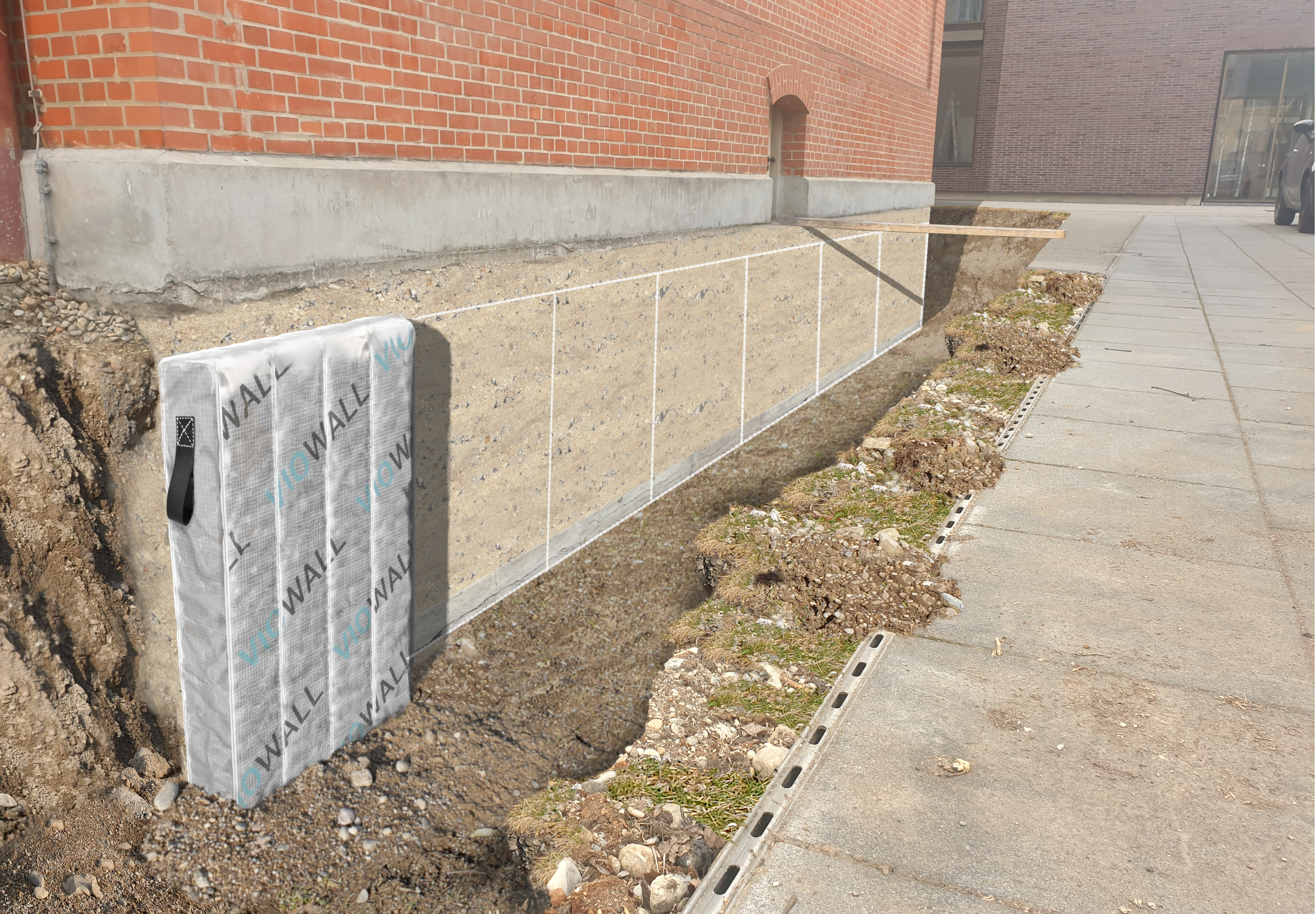 »This is an amazingly simple and impressively implemented solution to keep foundation walls permanently dry. Like a breathing membrane, the glass foam cushions of recycled glass form a closed barrier that dissipates moisture through evaporation, thus preventing waterlogging. It is an innovative area of application for an ecological insulation material.«