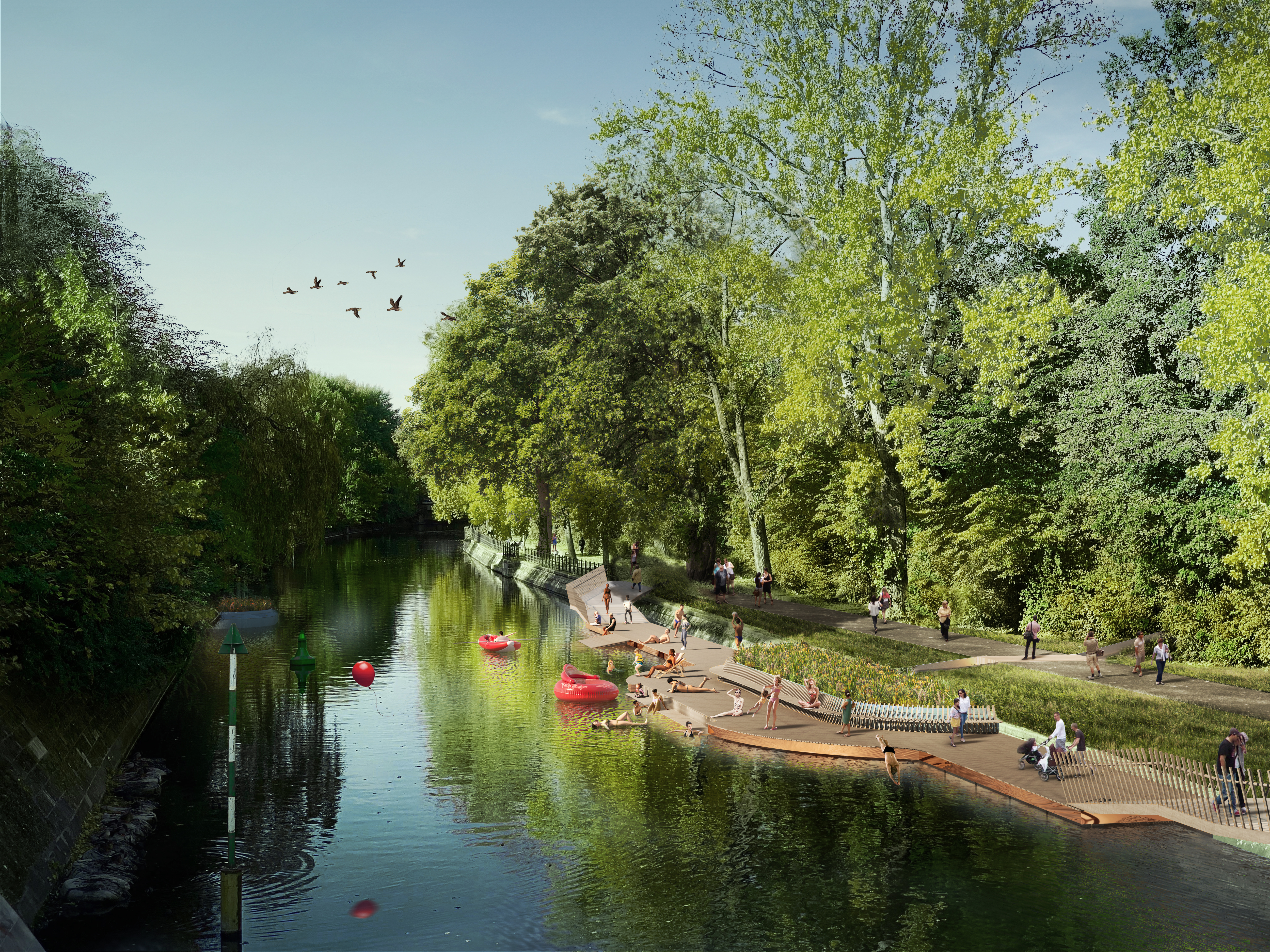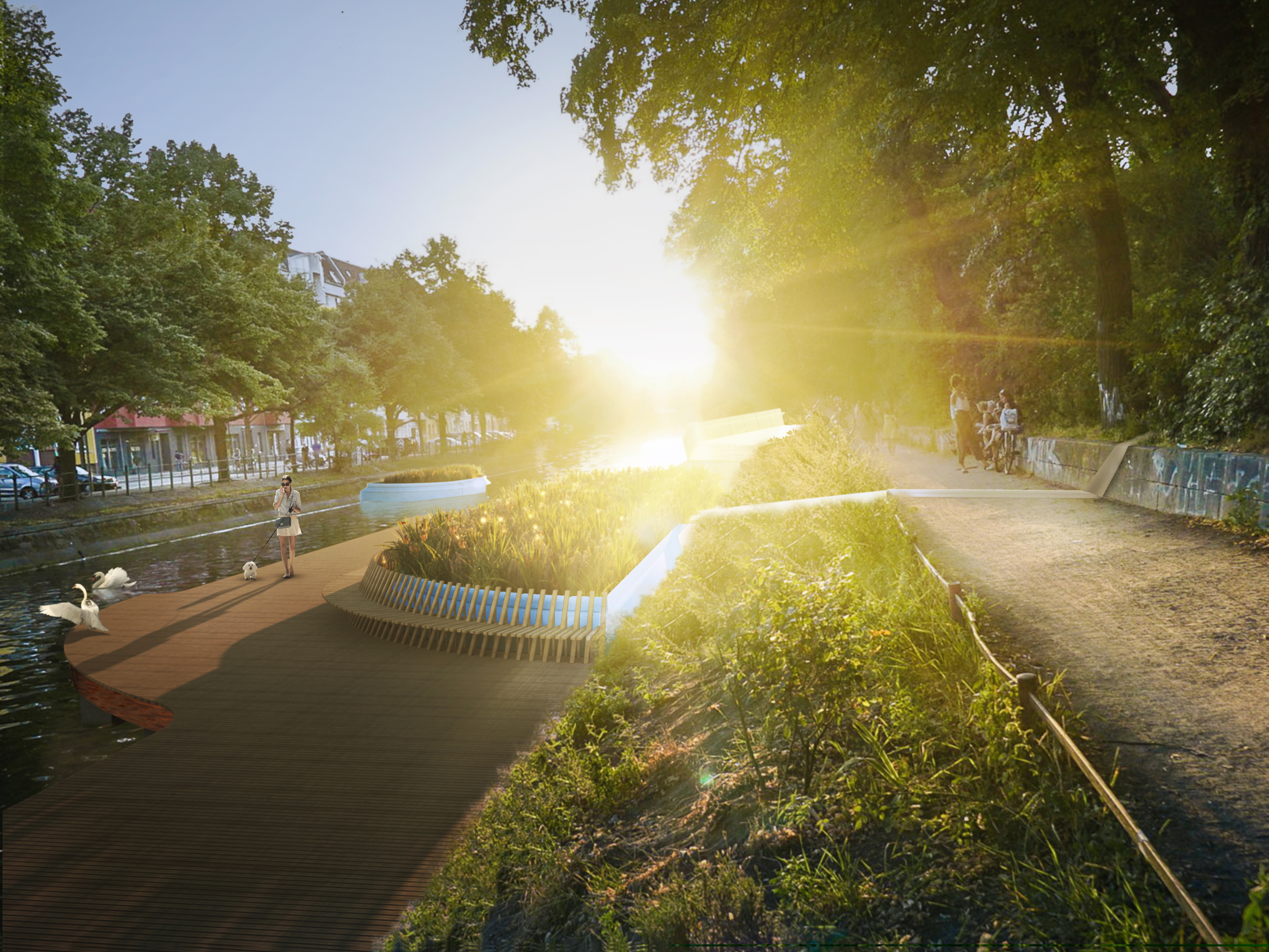 The motivation behind the development of urban:eden came from the knowledge that the river Spree in Berlin would actually be bathing water quality if our sewers were not overflowing and polluting the rivers 30 to 40 times a year following heavy rainfall. The question was whether rainwater could be put to more sustainable use to prevent overflows. From this emerged a vision of making urban water bodies usable for the public as open-air swimming pools, while at the same time improving the local climate.